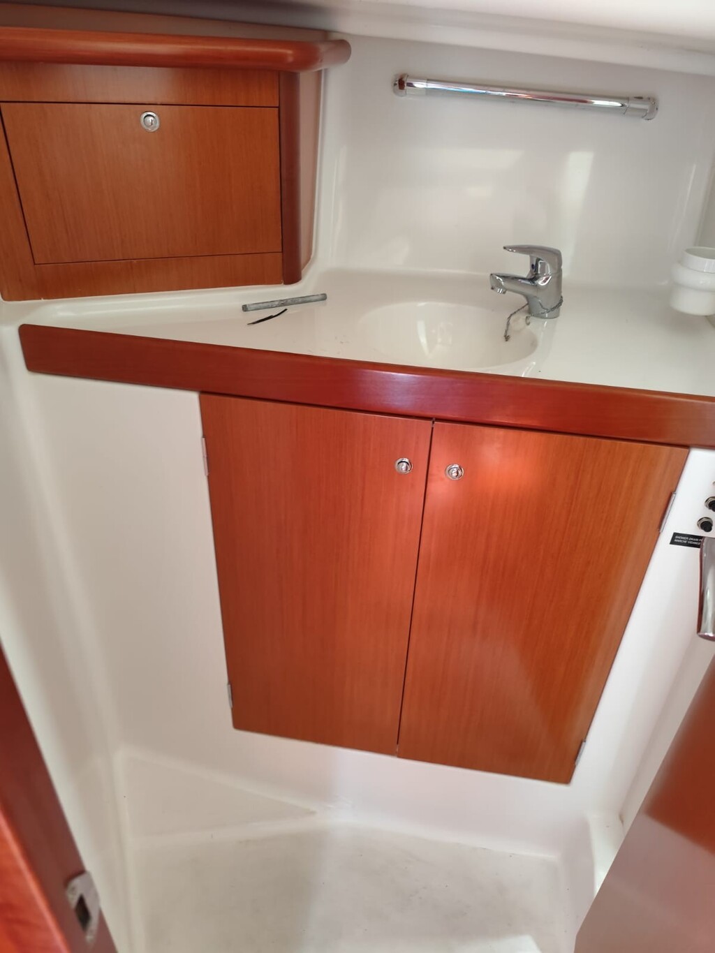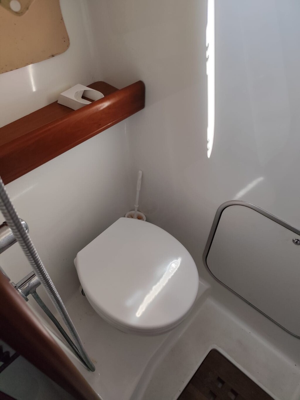 Salle d’eau avec WC électrique, douche, eau chaude/froide sous pression.Capacité eau douce 327L