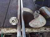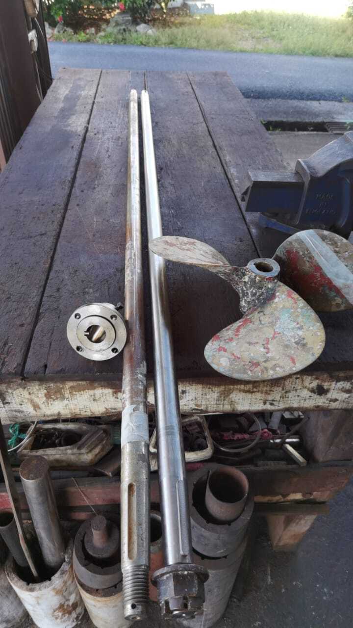 Un arbre d'hélice neuf en inox est prêt à être installé.