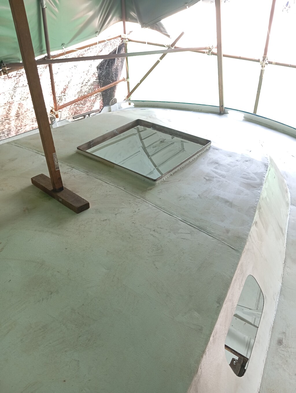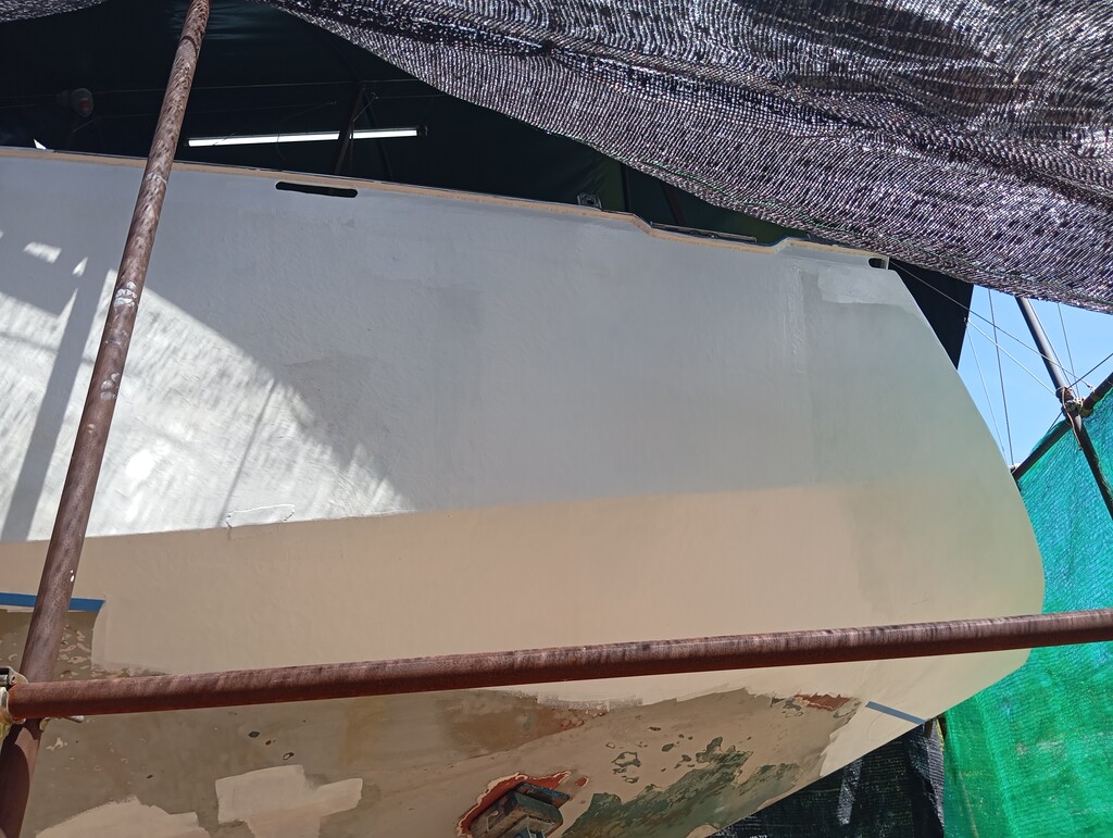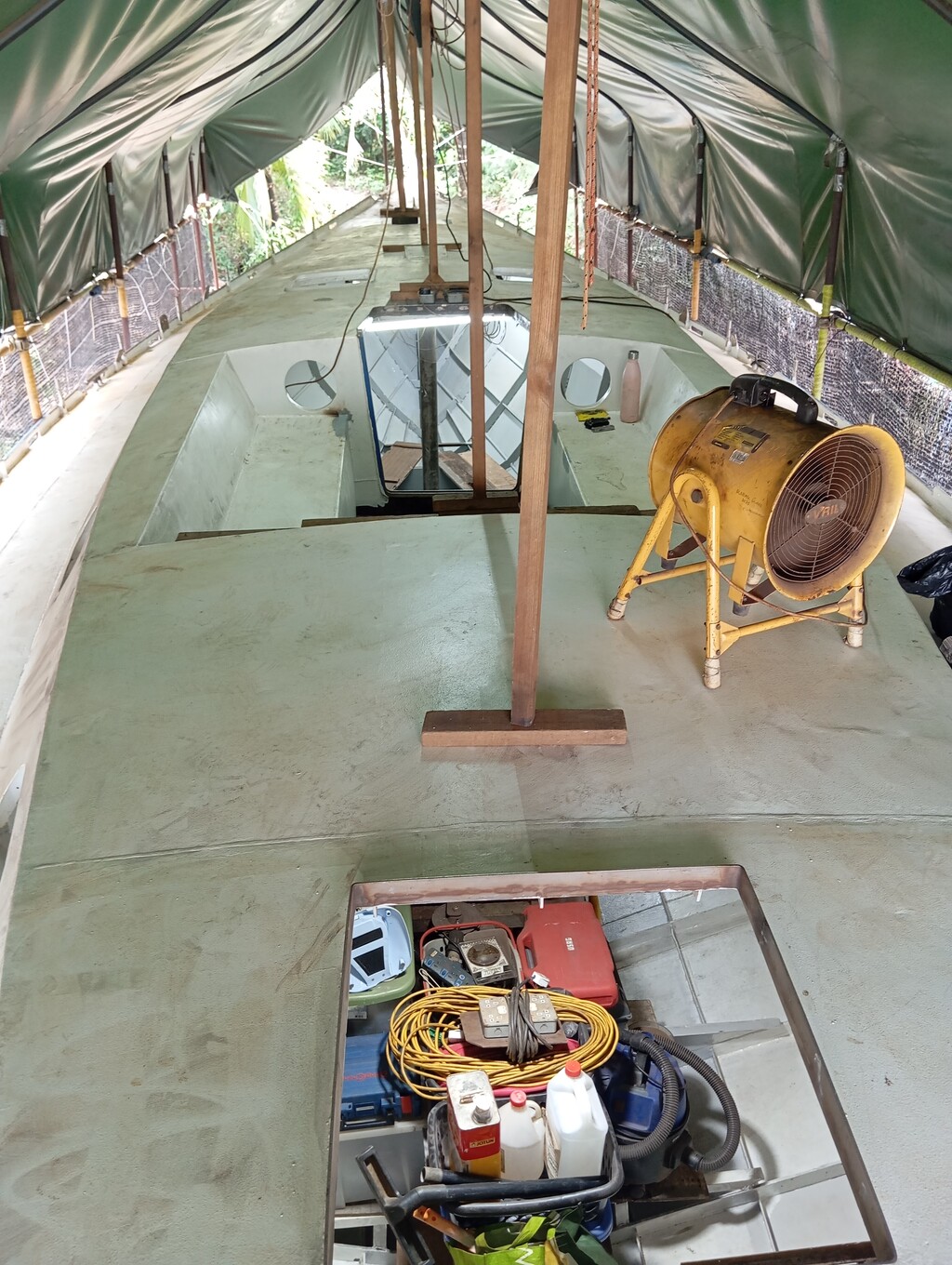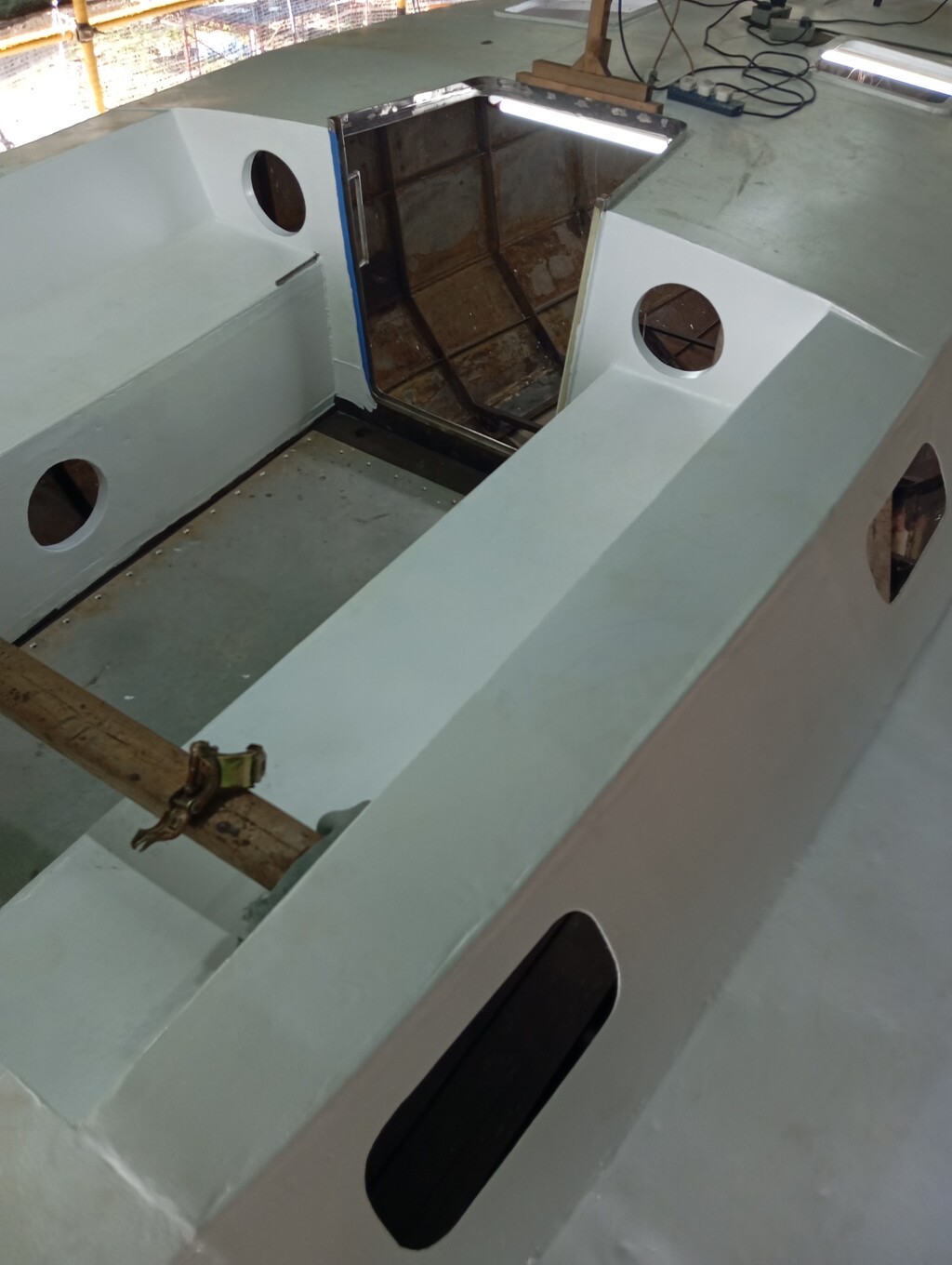 Ainsi, l'intérieur, le pont et la ligne de flottaison sont entièrement recouverts.