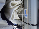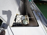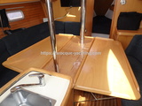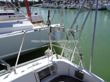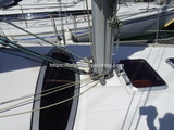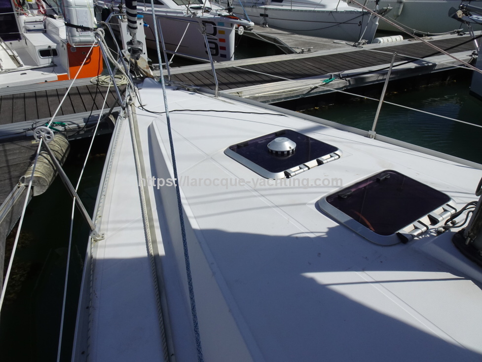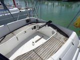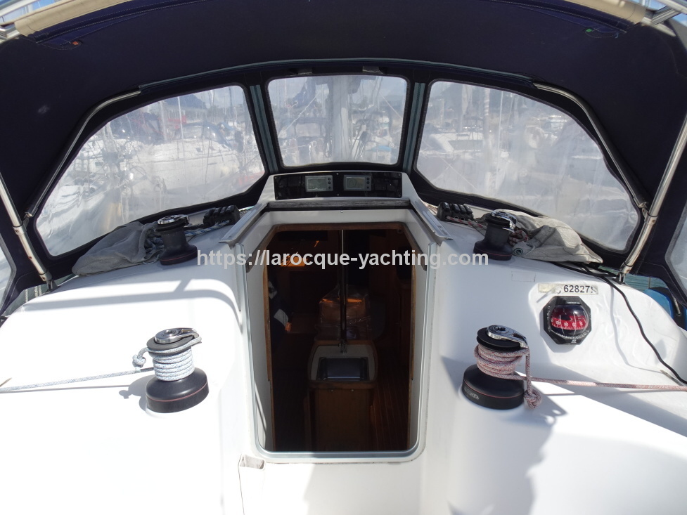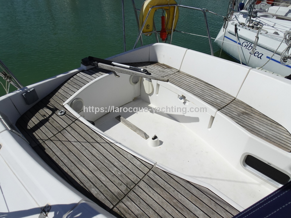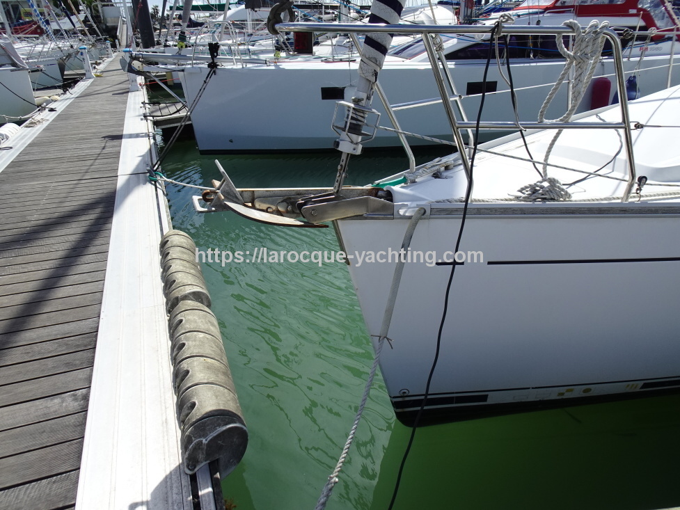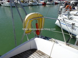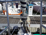 Guindeau électrique. Mouillage principal, ancre FOB. Mouillage secondaire. Capote de roof, en bon état, Voilerie Service. Barre franche avec stick. 1 Echelle de bain. Douchette de cockpit. Chaise hors-bord. Portique support pour les panneaux solaires / bossoirs d’annexe. Bancs de cockpit et fond de cockpit lattés teck.