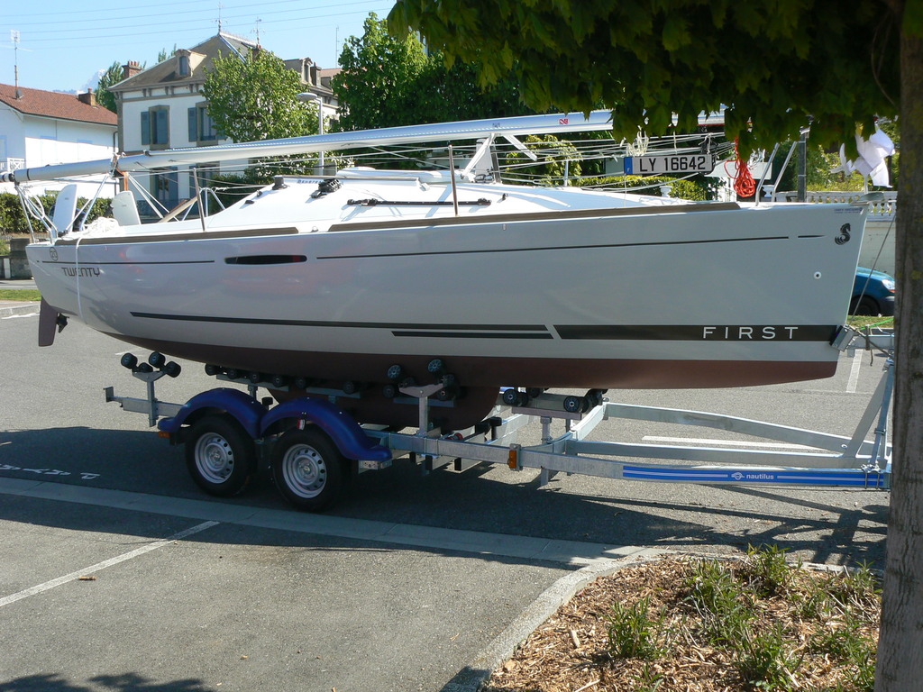 YEK ROUZ est basé à Yvoire sur le lac Léman. Outre de très nombreuses navigations sur le Léman, YEK ROUZ a navigué en Bretagne sud, Charentes, Vendée et Côte d’Azur (Voir la chaîne You Tube « Allons z’Yvoire » ALLONS Z'YVOIRE - YouTube). Le fait d’avoir une remorque sur mesure pour le transporter est pour cela un véritable atout. Remorquer YEK ROUZ ne nécessite pas de permis E mais un simple B96 car l’ensemble bateau + remorque pèse 1900 kg. Attention, la remorque ne permet pas une mise à l’eau directe, il faut gruter le bateau.