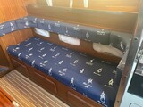 Un carré très vaste pouvant accueillir 5 couchages. La partie WC et la cabine double sont aménagés à l’avant .La cabine arrière est totalement autonome et accessible par une deuxième descente.