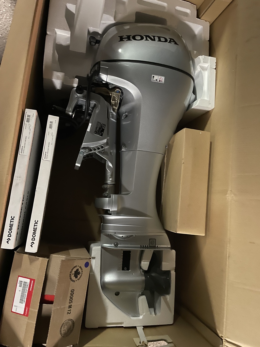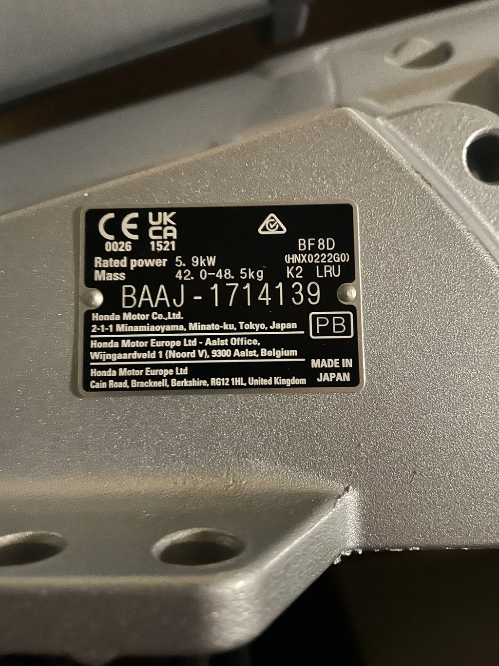 Moteur HB neuf (pas touché l'eau) 8cv 4 temps arbre long avec démarreur, alternateur et accessoires 2800€