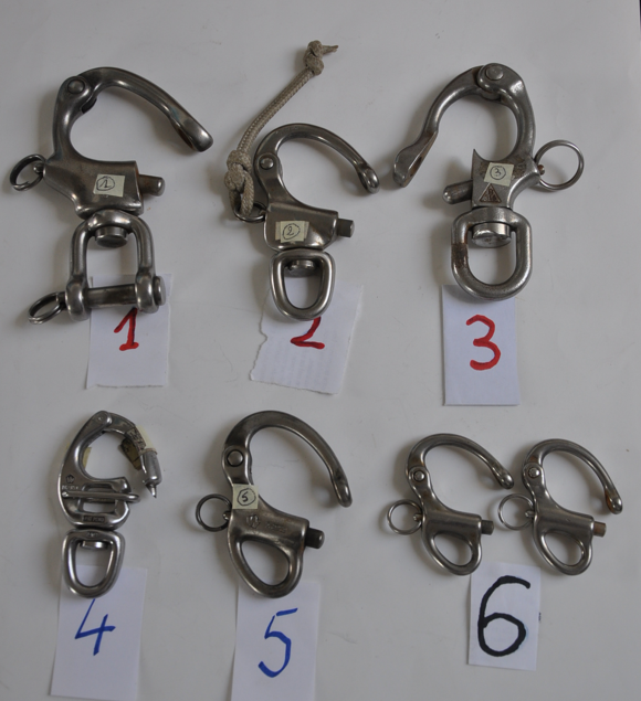 - No6 : 2 mousquetons de drisse à œil ? Longueur 50mm.960/2000kg. 20€ pièce.