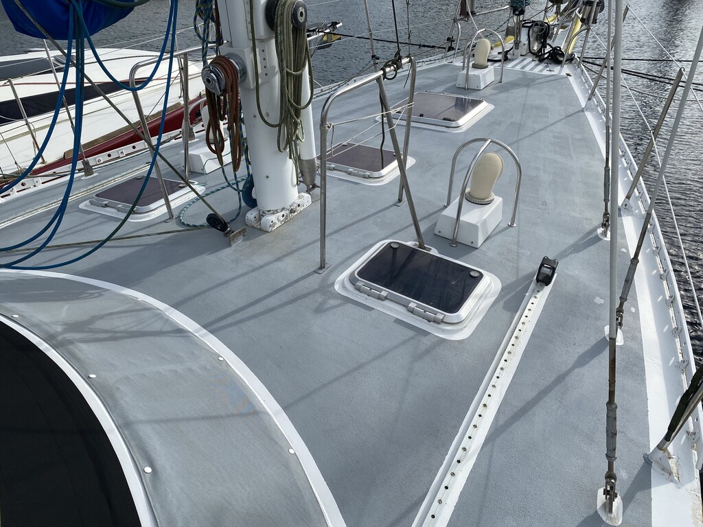 Trirème 50, bateau de voyage idéal. Goélette en acier. Bateau entièrement rénové et refait en 2013. L’aménagement intérieur a été refait. Les volumes sont très spacieux. La coque a été rénové également avec sablage complet et choupage. Aménagé avec 3 cabines dont une très belle cabine arrière. Equipé d’un moteur de 99 cv, d’un groupe électrogène, d’un dessalinisateur. Equipements électronique complet. Equipé de panneaux solaires et d’une éolienne. Annexe et HB.Inventaire sur demande.
