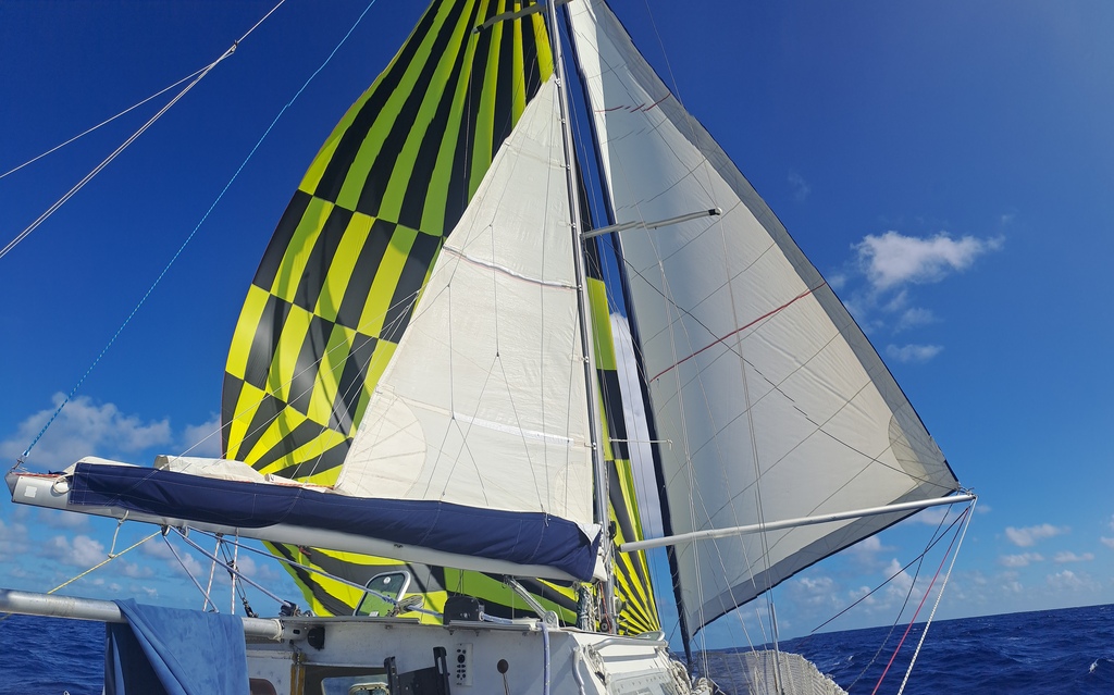 Après plusieurs traversées océaniques (Atlantique, Pacifique), VAYU navigue actuellement en Polynésie française, déjà papéetisé (taxe payée).