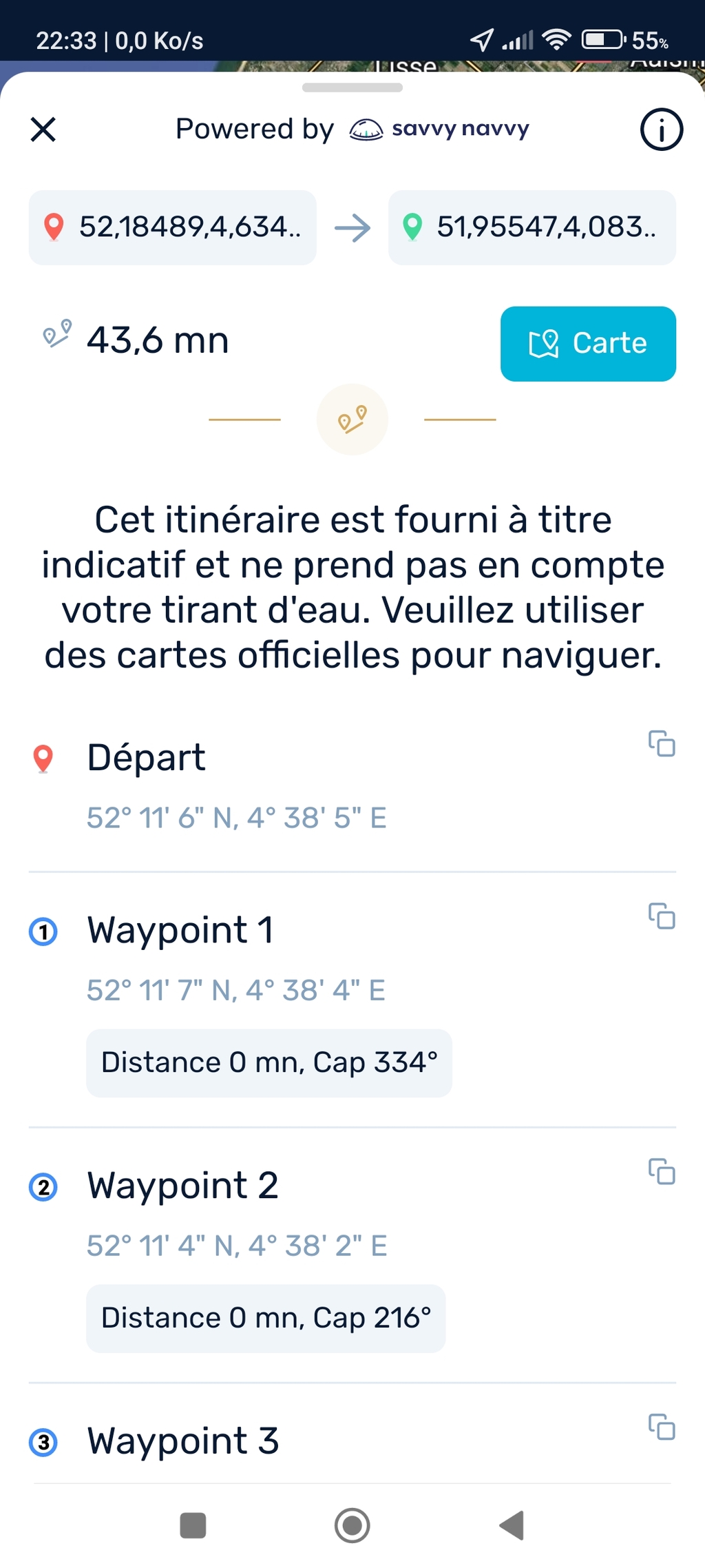 pour poser des way-points (des points d'étape), il faut savoir où passer, et disposer de cartes.