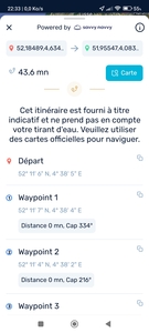 Mais alors tu seras obligé de placer puis relier les waypoints manuellement. Ce n'est pas comme en voiture où Waze a toutes les routes et carrefours (waypoints) déjà enregistré et te bâtie la route automatiquement.