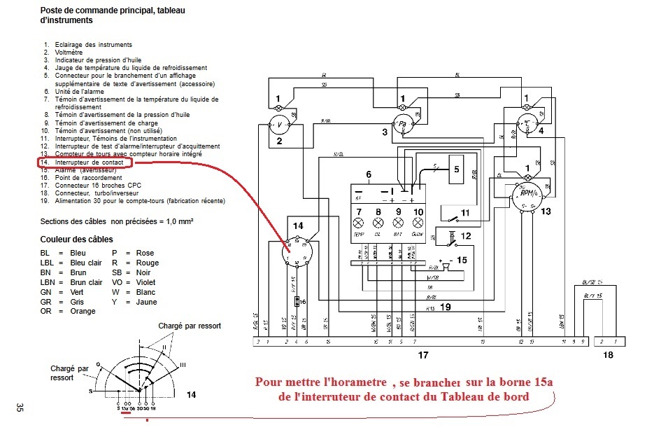 Je voudrais installer 2 nouveaux horamètres sur mon bateau. Les horamètres d'origine sont inactifs 2/4. Je voudrais savoir si quelqu'un possède un plan de cablage et/ou me dire sur quel fil du neiman je dois me reprendre. Infos: moteurs KAD42 de 1995, double poste, 1000h.