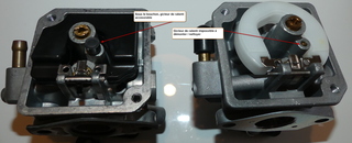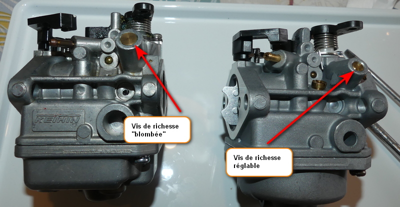 2) La vis de richesse est plombée pour l'ancien, réglable pour le nouveau (mais je n'ai rien touché! je vais d'ailleurs la coller car elle semble trop facilement tournable, avec les vibrations ...)