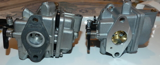 8) le montage sur le mercury utilise une entretoise coté moteur, avec donc deux joints de chaque coté de l'entretoise, mais le nouveau carbu n'est livré qu'avec un seul joint.Le deuxième, inutile, est pour le "filtre" à air ...