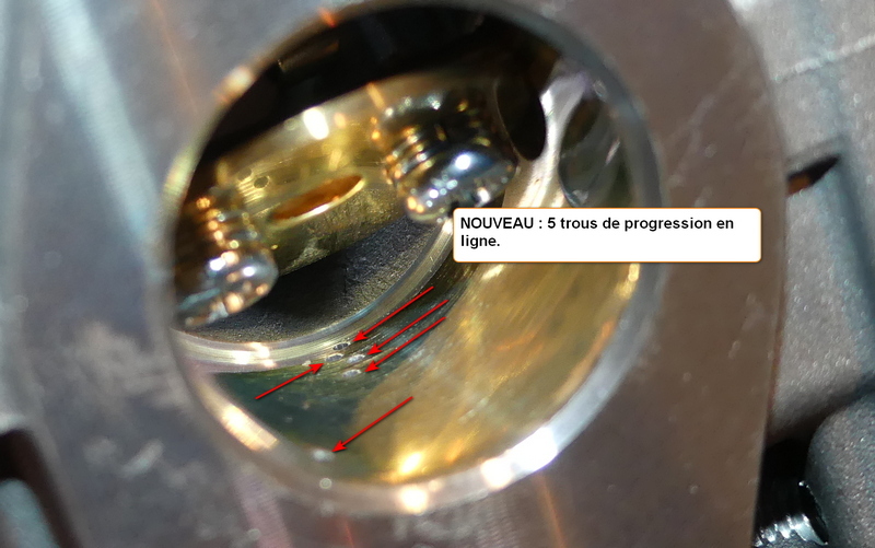 Alors perdu pour perdu, j’ai percé ce gicleur avec le plus petit des forêt que j’ai, et effectivement ca touche bien le problème d’origine : plus de calage à l’accélération, par contre difficile de revenir au ralenti. Le problème est donc bien un mélange trop pauvre au ralenti, devenu trop riche avec ma modif …