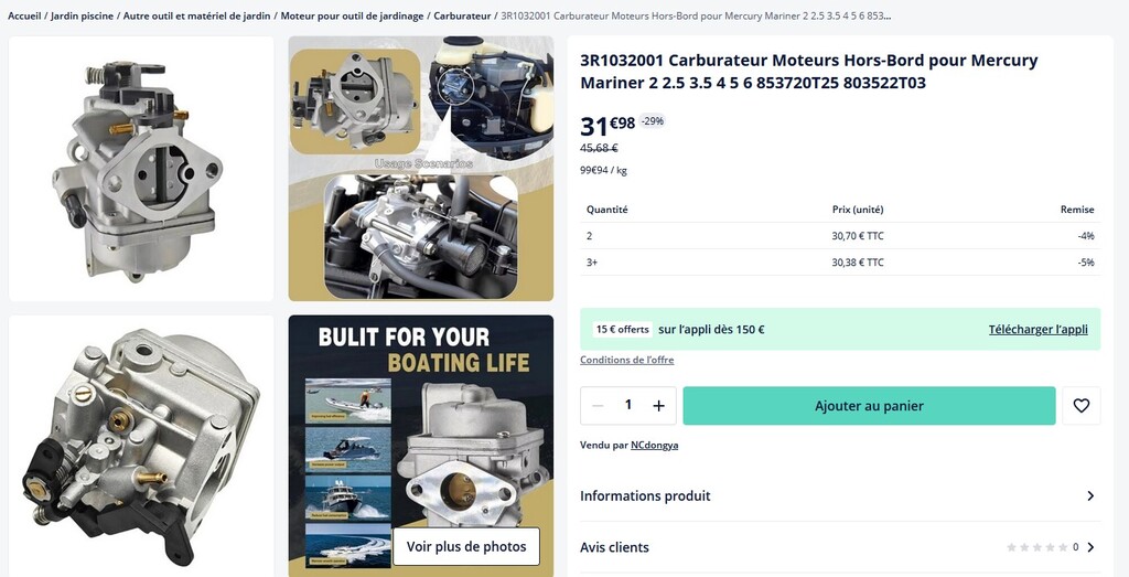 sur un 4cv 4 tps mercury j'ai monté un carbu acheté sur ali à 20€ le jour du blackfriday... RAS pendant 2ans puis bateau vendu (avec l'ancien carbu qui n'était finalement pas la cause)