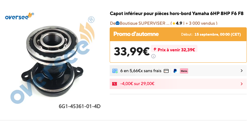 Petit détail, ce n'est pas "Oversea", mais bien "Oversee" comme j'avais dit. Ils ont plein de pièces hors-bord de bonne qualité.
