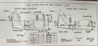 Ce schéma est erroné à mon avis. C'est par rapport à la flottaison qu'il faut le placer. D'après le manuel Vetus c'est 40cm mini au-dessus de la flottaison.