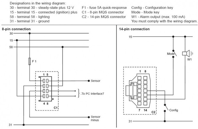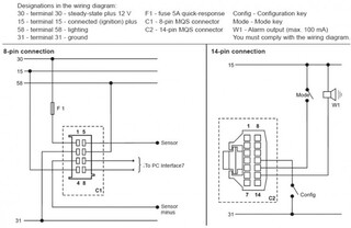 Viens ensuite le deuxième problème et lui me pose souci car entre le schéma de cablage fournit par VDO et la notice pour regler le compte tours, les infos sont différentes. Sur le shéma, il faut utiliser le connectuer 14 broches pour monter les switchs (mode sur la ligne + après contact et config sur la ligne de masse) alors que pour rentrer le code il utilise la borne 4 (+ après contact) du connecteur 8 broches. J'ai essayé les deux méthodes mais je n'arrive pas à avoir la commande PULSE qui s"affiche pour entrer le code.