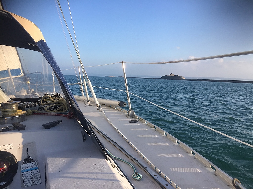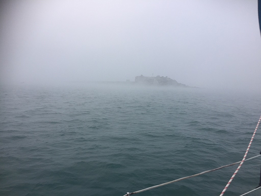 Devant Cherbourg, vers midi j'avais 30m de visibilité alors que d'Omonville je voyais la rade. Obligé de faire un détour au "large" pour éviter le champ de mine devant la passe de l'Ouest.