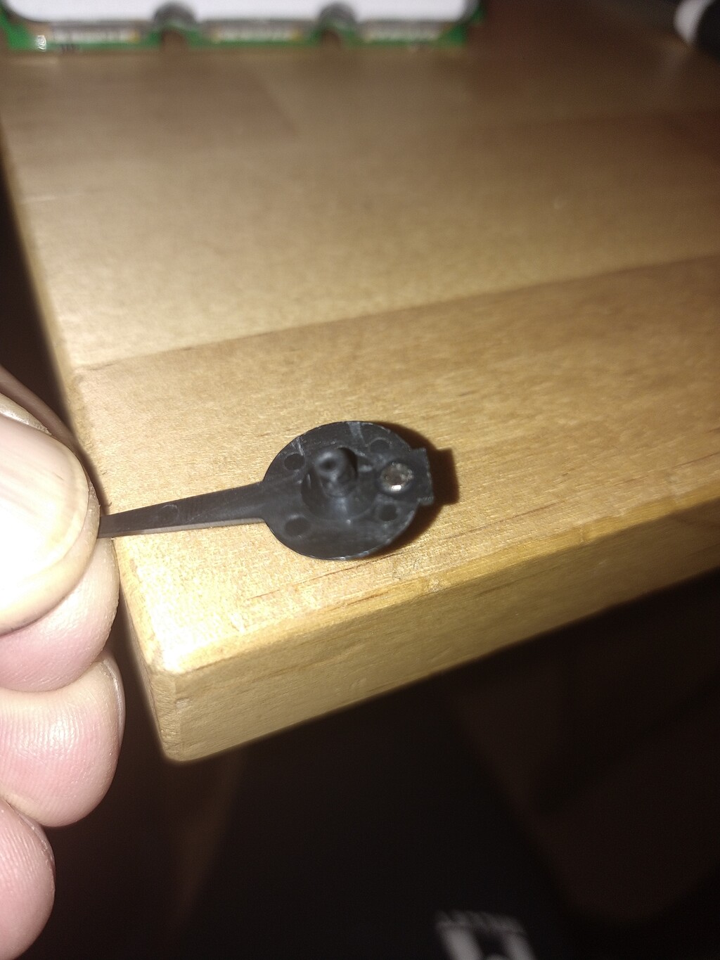 Il y a comme un petit aimant dessous l'aiguille,est ce à dire que je ne dois pas coller l'aiguille sur l'axe qui ne sert que de support ?