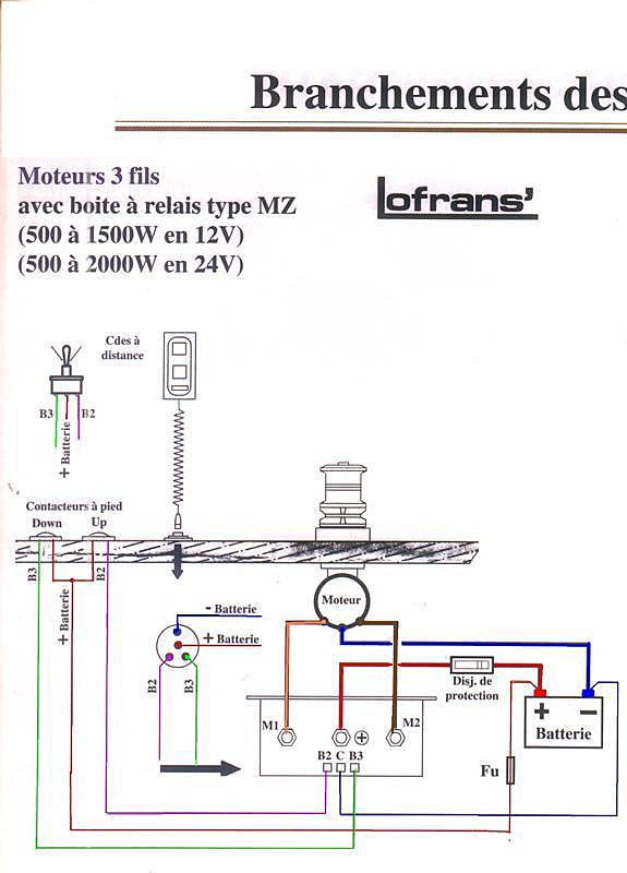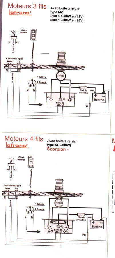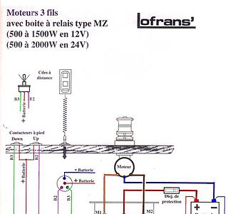 Tu annonces un guindeau Lofrans de 1000w en 3 fils, puis en 4 fils, puis en 2 fils; un relais à 3 bornes, puis à 4 bornes ...pour terminer en nous disant que tout compte fait :c'est un guindeau Leroy Sommer, etc...