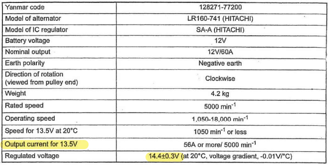 "Regulated voltage: 14.4V"