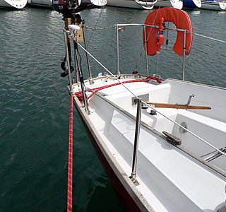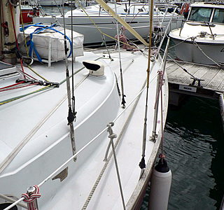 Il m'a répondu que le précédent propriétaire (son vendeur) avait eu l'intention de partir aux Antilles (ce qu'il n'a pas fait) ; et que, pour augmenter la sécurité du gréement, il avait rajouté les deux haubans qui ont tant étonné par ici.