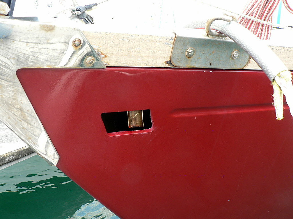 ton hauban zarbi (je crois) tombe sur la ferrure en U (cadène) posée à cheval sur le liston bois, qui sur le mien servait à fixer des béquilles (et je me souviens avoir en vu un sur une cale posé comme ça)