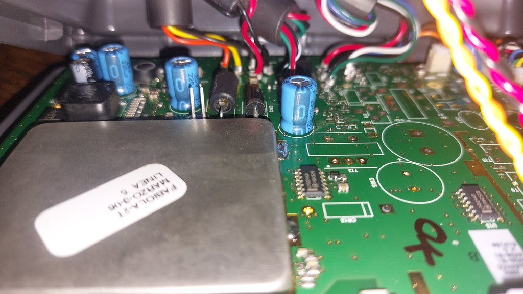 Arno voici quelques photos, si tu arrives à déceler quelquechose. Je ne vois pas trop comment le stimuler hormis le secouer un peu ( mes connaissances electroniques sont comme tu vois assez... sommaires). J ai observé les composants et ne vois rien d anormal