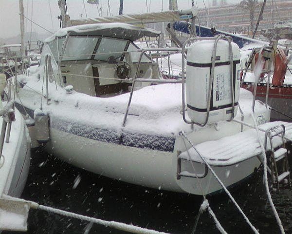 @Diamba : je pense que tu fais allusion à mon ancienne installation sur le balcon arrière : je trouvais que ça faisait trop de poids, et manque d'accessibilité; maintenant, la survie est sur le pont, à l'endroit prévu par l'architecte, il y a des renforts alu incorporés dans le support.