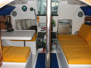 je dirais assez rapide, construction solide mais mal fini, agréable à vivre en solitaire, difficile à barrer au portant ...