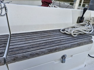 Les bancs en teck de mon cockpit commencent a avoir de l agent et ca ne fait vraiment pas joli ...
