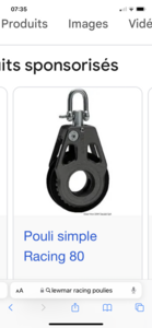 Je vais terminer mes palans de bastaque hautes j’ai reçu les harken micro ringot violon j’ai fait la correspondance avec des anneaux de 2 tailles différentes