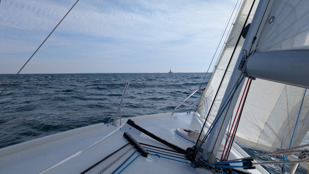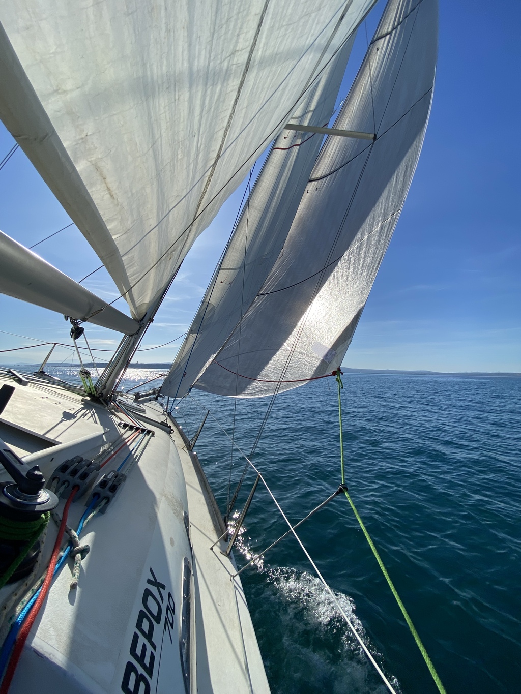 Reste à bien régler le truc avec la drisse de tête qui tient une voile sur bd