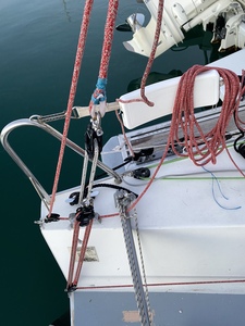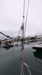 J’ai taffé le matelotage des bastaques hautes il me reste à sortir les 2 dyneema du mat pour faire 2 épissures pour poser 2 anneaux et c’est fini