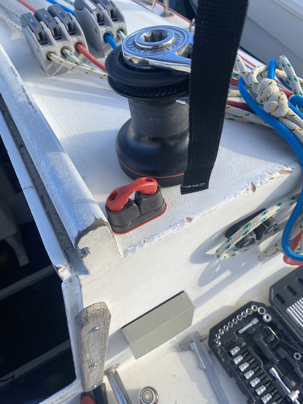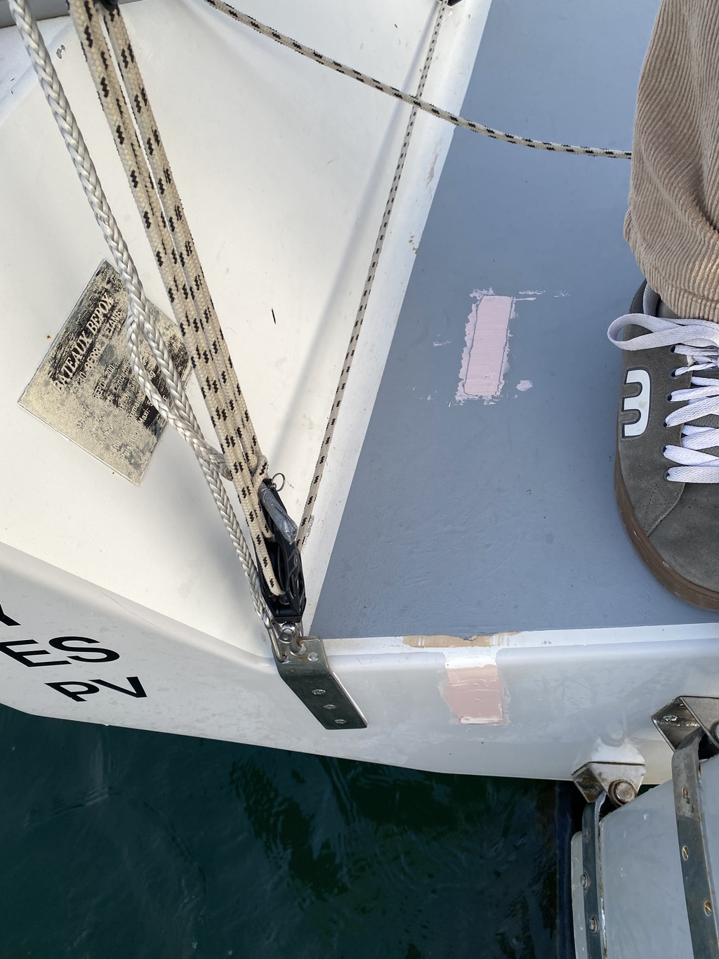 Je viens de depiauter la chute pour récupérer les clamcleats et garder une portion de laminé au cas où j’aurais des répare à faire