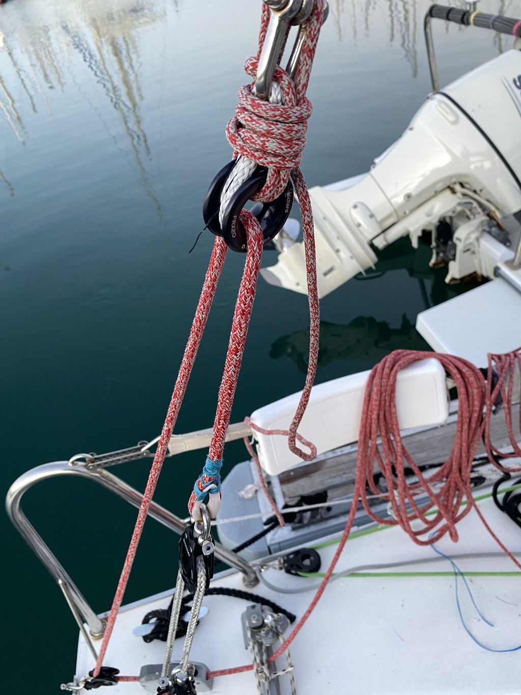 Il faut que je monte au mât pour les décrocher et faire des épissures avec anneaux de friction