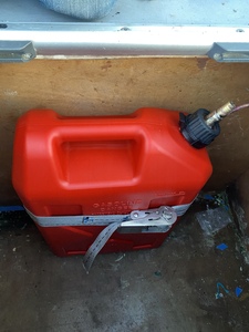 J’ai pris un bidon 25 l en hauteur que je sanglerais et que je vais raccorder à cet évent