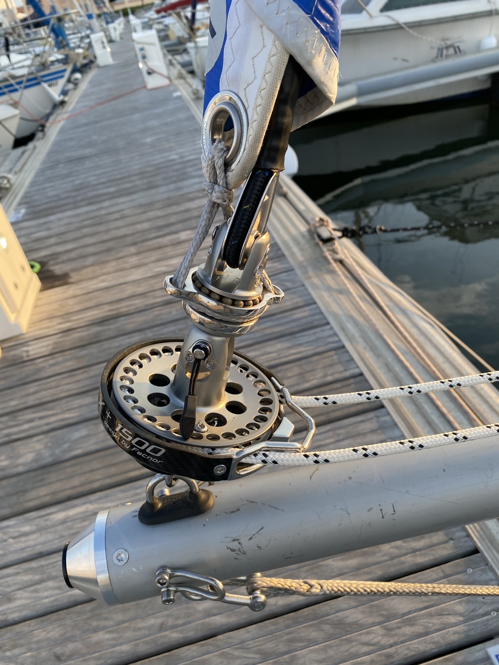 Je précise, c'est un geenaker (60m2) très léger que je ne sors que par petit temps pour m'éviter de faire du moteur donc pas des efforts terribles.