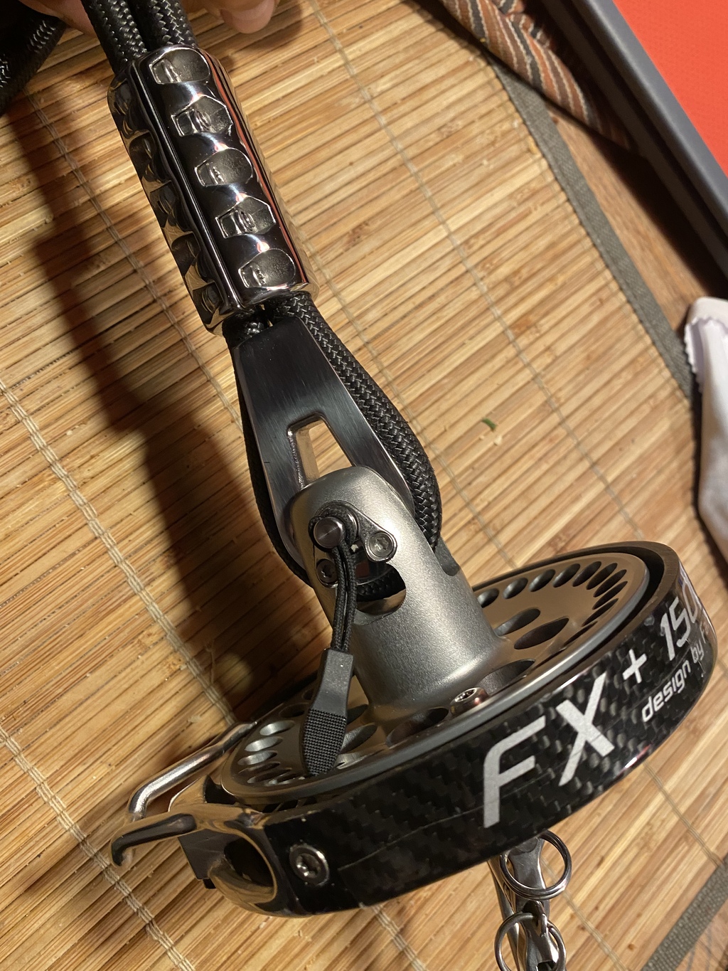 - L'emmagasineur est muni d'un cliquet destiné à bloquer un sens de rotation (déroulage). Ce cliquet est débrayable par la traction sur un des sens de la drosse (sans fin). ce n'est pas "idiot proof" :-(. Pouvoir immobiliser les deux côtés de la drosse me parait indispensable.