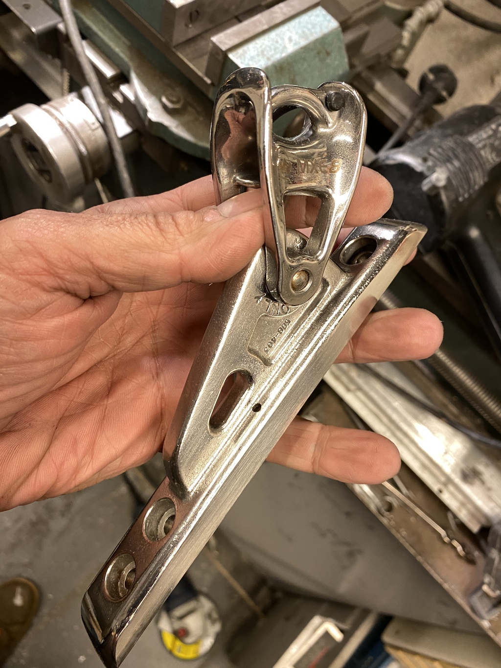 À partir d’une ferrure de bôme que j’ai recoupé ressoudé et posé le plus bas possible pour améliorer le couple