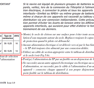 Il faut d'abord suivre les indications de la notice SIMRAD pour la protection et la dimension des câbles.