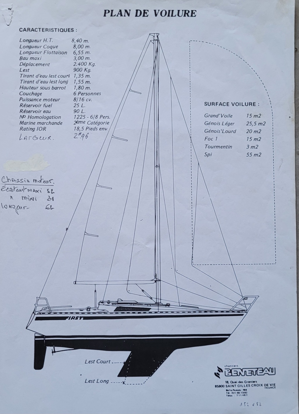 Suivant la photo, et le document Beneteau joint, le "Lest court" a un tirant d'eau de 1,35 et le "Lest long" 1,55.