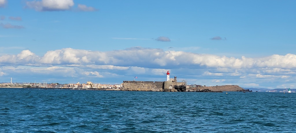 Partis du quai du port de Sérigan à 11:15, descente le long de l'Orb jusqu'à la passe de Valras pour prendre la mer, et cap sur Fort Brescou au portant.