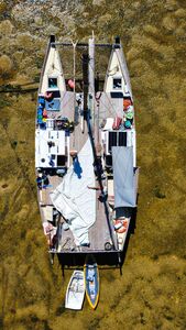 Pat45:Oui, beacher avec un cata, ça n'arrive pas si souvent que ça. Une seule fois avec le Naviplane, sur le banc de sable à Itaparica, histoire de se débarrasser des 2cm d'épaisseur de barnacles récupérées en 1 semaine au ponton.·le 05 sept. 09:53