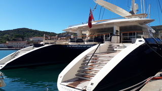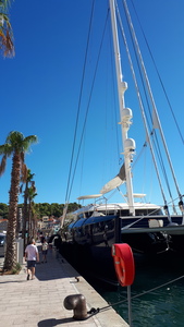 Croisé au quai en Med... un "44 pieds" mât de 53. À louer à partir de 250K€/semaine.