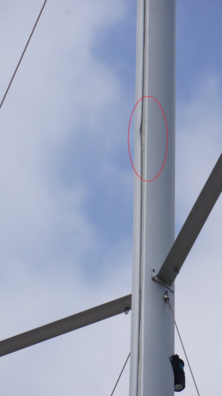 Le module d'inertie et la résistance du mât ne peuvent être impactés par un défaut comme celui-ci qui ne diminue pas la section du métal.