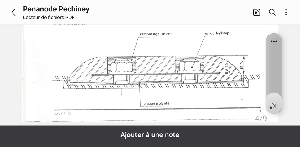 Les courants consommant l’anode doivent y entrer par les goujons de fixation et en ressortir par la surface exterieure; d’où les zones isolantes canalisant le courant.