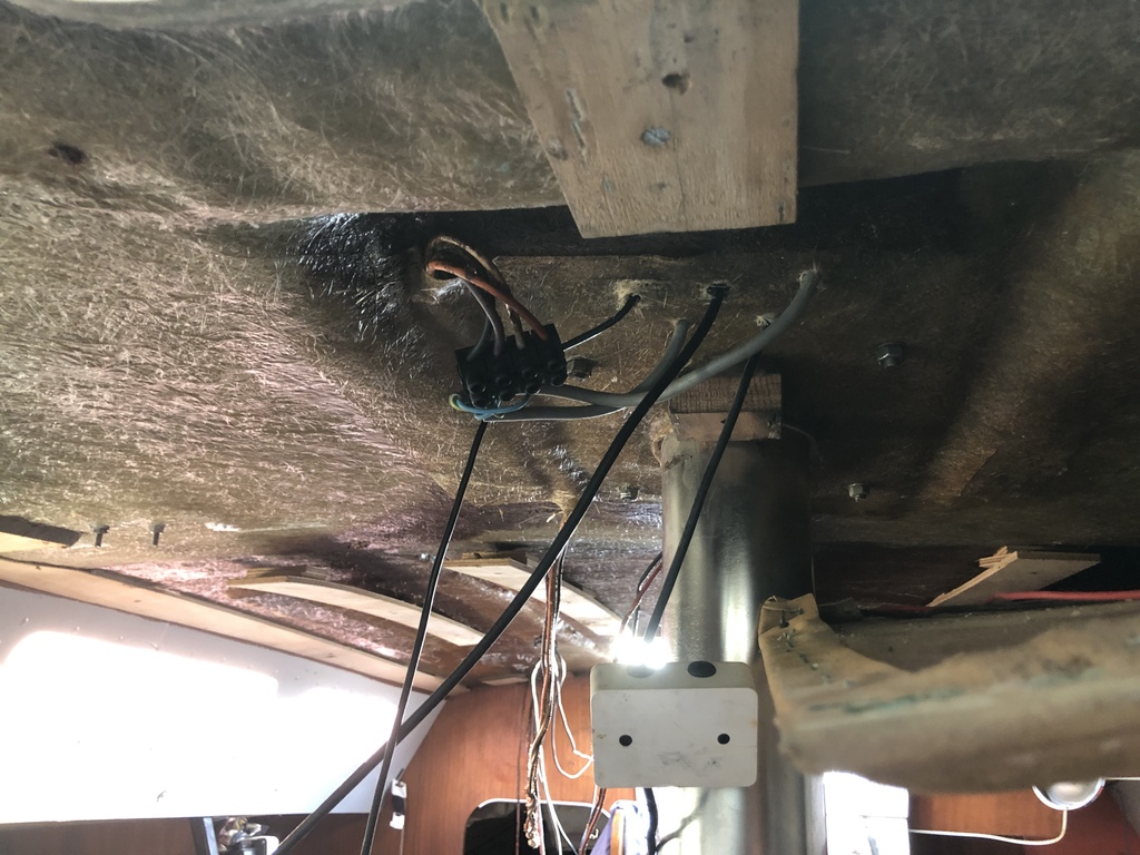 Au moins ça aura permis de faire un point complet de sous le pont. Refaire quelques connections électriques bien rouillées dans les dominos… pas très sécu… ce bateau m’a coûté 1000 par mois depuis 6 mois. Ça fait cher pour un 34 pieds de 45 ans en pourtant super forme aux visites avant l’achat. Mais impossible de tout voir sans un expert.