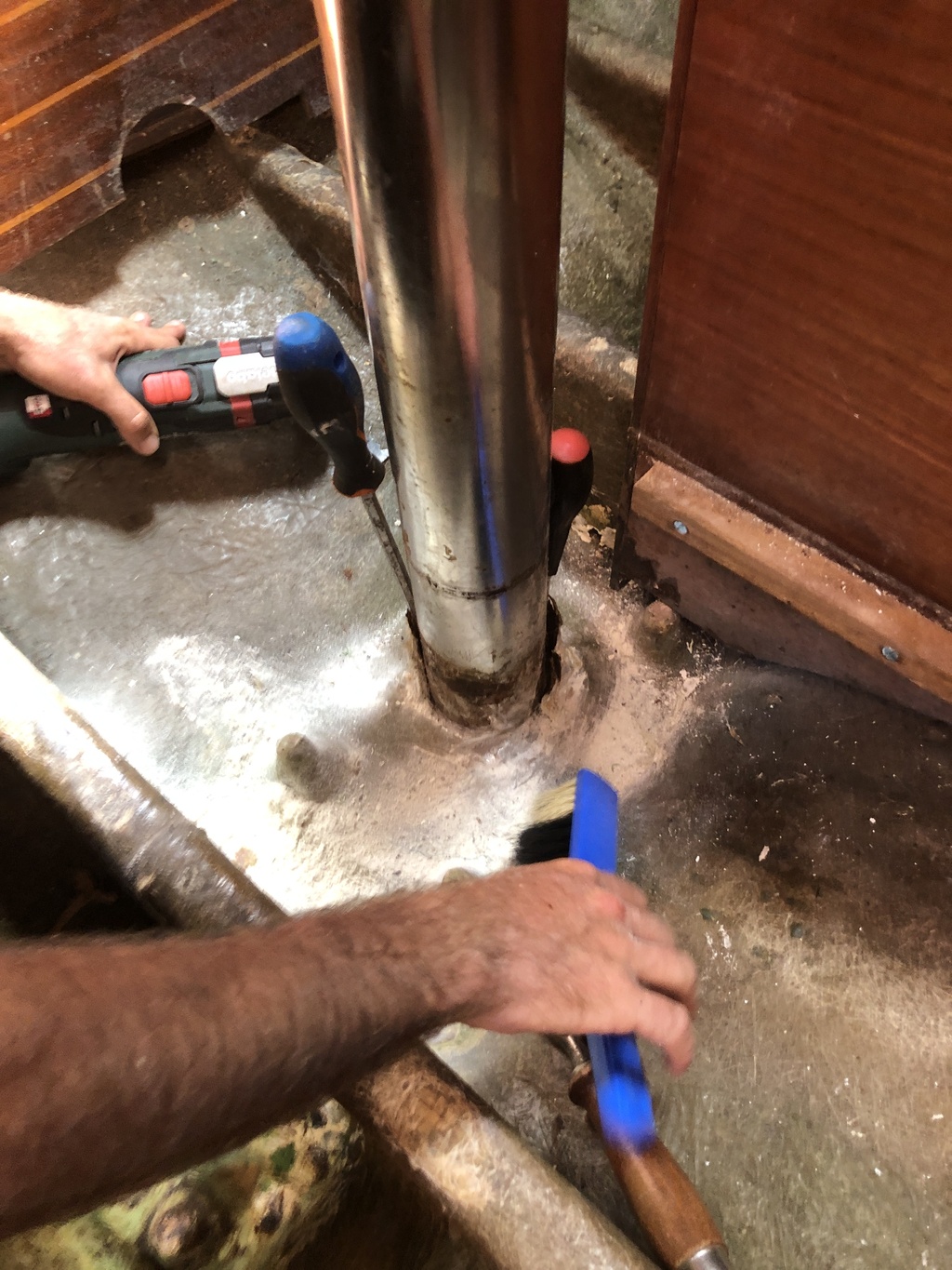 Mon sabot de mât est bien plat. Pas d’eau qui stagne autour du mât. Pas de fissures ni de déformation visible.