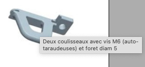 Ce que je reproche à ces coulisseaux plastique Selden c'est qui sont vendu sans système d'accroche (pas de visses ni écrous, de plus les percements faits dans ces coulisseaux ne sont pas fileté).
