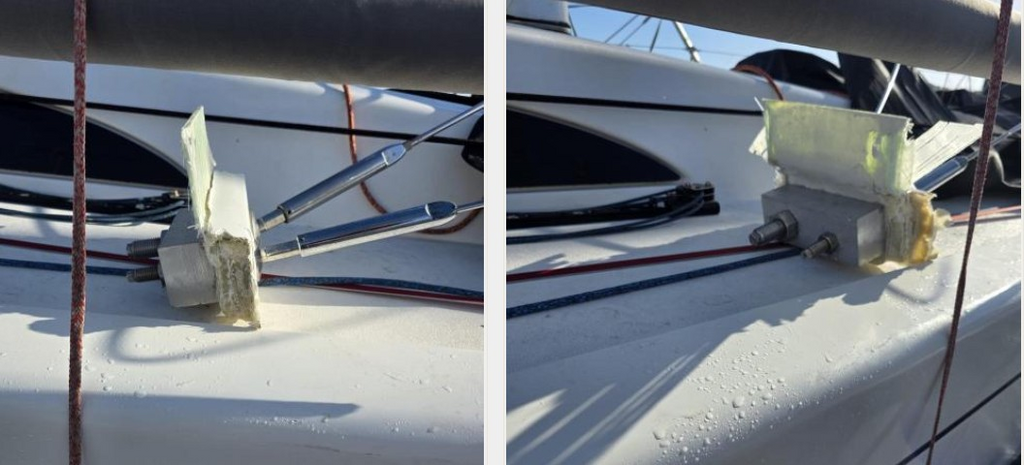 Ci dessous les Photos que j'ai déjà publié sur le forum.. du montage Jeanneau qui a équipé des milliers de bateaux qui naviguent toujours dans soucis... C'est bien plus terrifiant et pourtant ça tient !